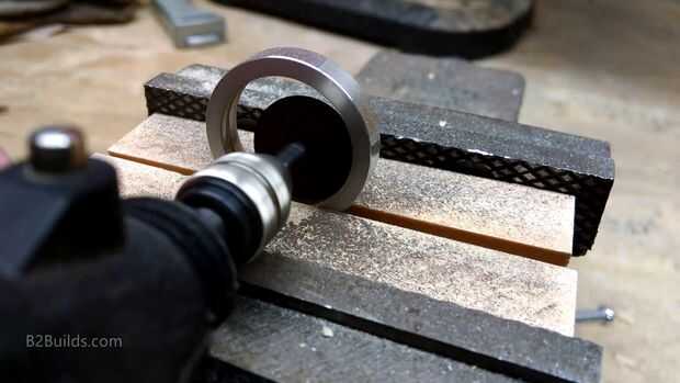 Más adelante nos va pegar la madera y el imán dentro de estos bordes de aluminio con epoxi. Epoxy típicamente se adhiere bien al metal, pero añadí algunos surcos en el interior para dar el epoxi más superficies para entrar y tomar posesión de. Éstos fueron hechos con un disco de corte en una herramienta giratoria. El aluminio masticó arriba del disco de corte bastante rápido, así que probablemente hay una forma mejor de hacer esto, pero es lo que tenia a la mano. Esto debería proporcionar una mejor conexión mecánica entre el metal, madera y epoxi más tarde.