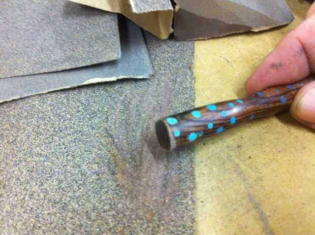 Cocobolo realmente no necesita mucho, especialmente si se está utilizando para un lápiz. No uses nada que te cubra el hilo conductor que usted lija (para quitar el pegamento de la superficie que debe estar tocando los dedos). Hemos encontrado que incluso laca puede interferir con el contacto en un lápiz de madera. Josh tiene generalmente algunos compuesto casero de aceite de cera mineral en su escritorio, y funciona bien para el acabado de un lápiz de madera. Si usted no puede encontrar el acabado compuesto, pedir a alguien entrenado en el taller de madera y que puede encontrar. Frote en un trozo de muselina de algodón. Espere unos minutos, luego frotar apagado otra vez.