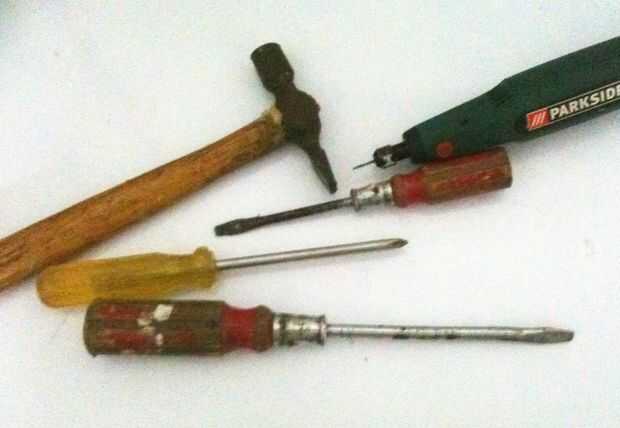 herramienta rotatoria como dremel (opcional... usted podría optar por el duro trabajo y el único clavo y martillo de manera)