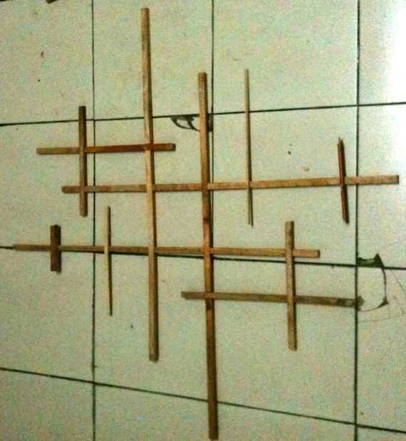 cortar la media vuelta juntas y conectarlos... no pegue. ahora al azar colocar palillos de aquí y allá...