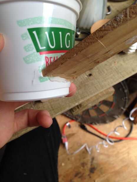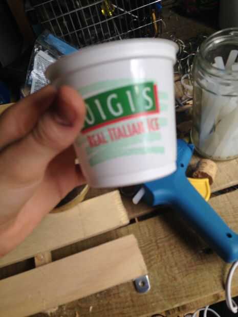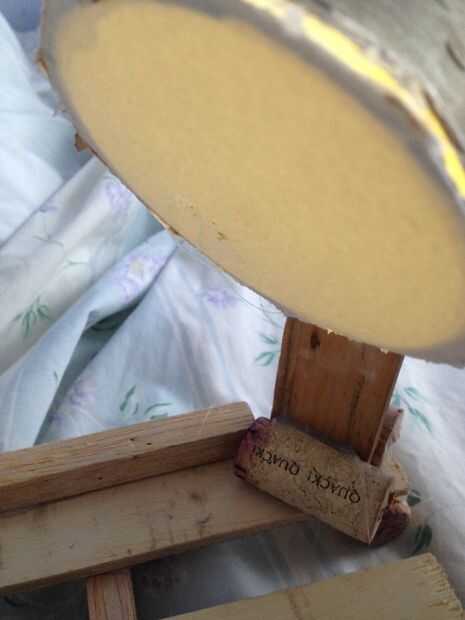 Esta pieza es opcional, solo puse en porque creo que se ve bien:). Si desea, puede instalar una luz led o un altavoz. IM no es una persona super técnica, por lo que acabo de poner una luz, siguiendo un esquema básico lo puede encontrar en línea. Usaba una vieja taza de hielo italiano, pero cualquier vaso de plástico debería funcionar bien. Hice un pequeño corte en el lado poner otro trozo de madera, que luego se pega a la taza. También decidí caliente pegamento pedazos de corteza que había encontrado en el exterior, para cubrir el logotipo y que se vea un poco mejor. También trazó una pieza circular de papel y había pegado al frente. Por último, pegué dos corchos en la esquina del soporte de la base. Intercala el pedazo de madera en medio y pegado para la estabilidad adicional.