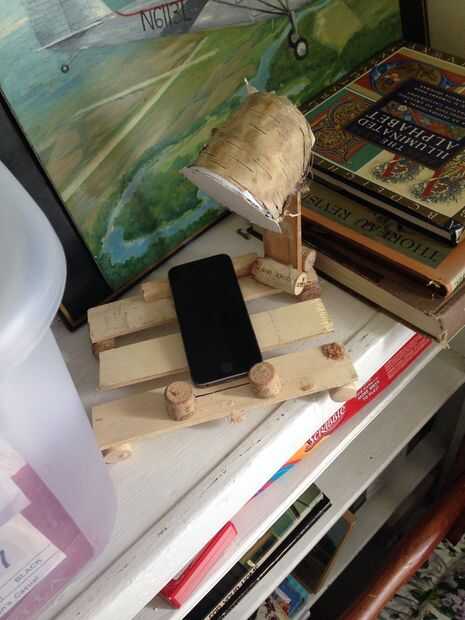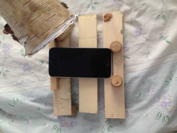Se trata de un soporte de madera teléfono hecho con madera de 1/8 de pulgada, utilizando la vida técnica para hacer madera flexible de la bisagra. Es ideal para ver películas o espectáculos o vídeos en la orientación del paisaje, pero no puede apoyar