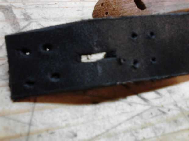 Necesita hacer una hendidura en el centro de la lengüeta en la hebilla para caber a través de, a continuación, perfore cuatro agujeros en el lado del éter de la ranura por lo que se puede doblar el cuero sobre el sí mismo.