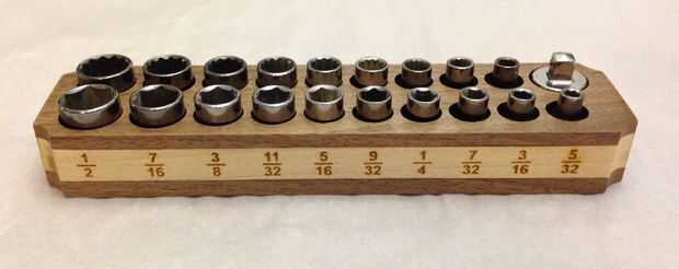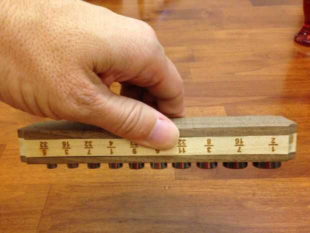 Ahora recoger el montón de tomas y ponerlos en su nuevo titular.  Las bandas magnéticas no son muy fuertes, pero ayudarán a mantener las tomas de saltando accidentalmente cuando se golpean o empujaban.  Como se puede ver, son solo lo bastante fuertes como para sostener el relativamente pequeño 1/4" unidad sockets boca abajo si tiene cuidado.  Para tomas más grandes utilizan imanes más fuertes (si usted quiere invertir su titular por alguna razón), o a aceptan los imanes le ayudará a mantener en su lugar para el uso normal.  ¡ Disfrute!
