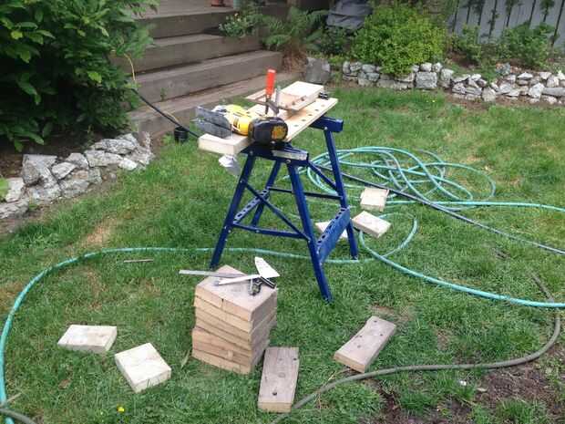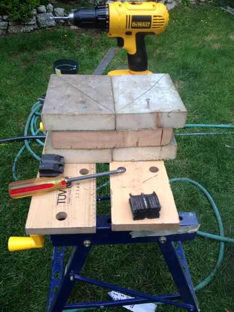 desea que el yunque sea alrededor tan alto como tus nudillos cuando las manos están a los lados para medir cómo gruesa la madera es y dividen su altura nudillo por eso (ejemplo 82cm / 4cm = 20,5 así que usted necesitaría cerca de 20 bloques de madera) por mis tableros de diferentes espesores y corté unos peses más luego necesitaba pero resultó bien al final. Usted también quiere hacer shure su stand por lo menos tiene la misma huella de su soporte o vas a tener un buen momento cuando usted golpeó una esquina sin soporte y y terrón de acero cae en el pie.