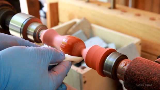 Tan sólo terminando esto brillantemente la manija y el color realmente aparece cuando usted consigue algunos acabado allí, y trata otra vez de la laca. Luego cortarlo apagado, lijado, acabado añadiendo alguna cera y tratando. Me gusto mucho esta madera también.