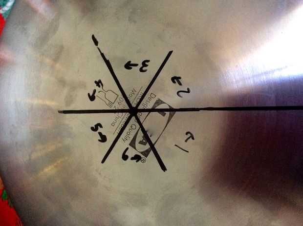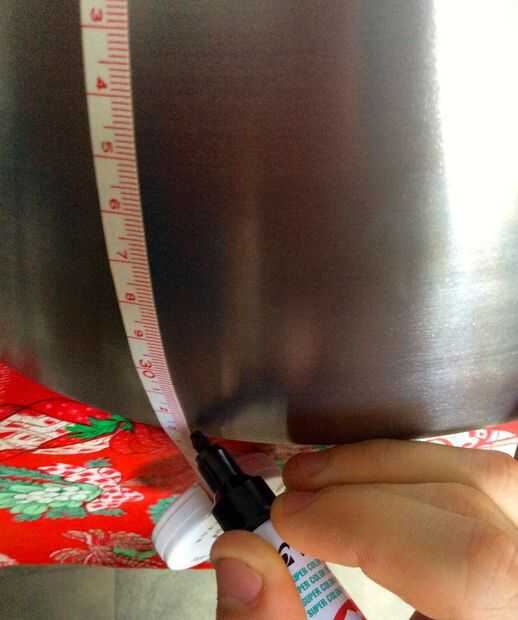 1. Voltee el recipiente hacia abajo y marque el centro con un punto