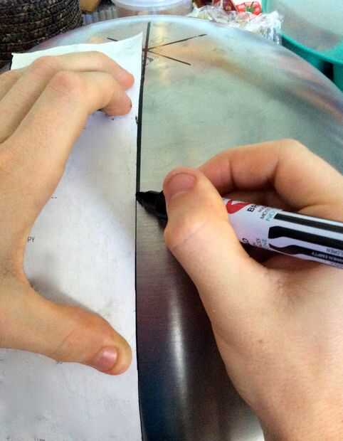 5. Utilice una cinta métrica para extender las líneas en el lado del tazón de fuente por lo que son perpendiculares con el borde de la palangana