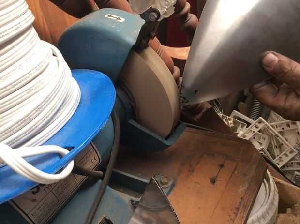 Esto es donde cortamos las hojas de los tazones de fuente. Los bordes serán extremadamente ásperos por lo que se debe limar.