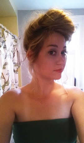 Mi pelo es bastante largo, pero ciertamente no necesitamos tanto pelo para crear con éxito peinado de nido de pájaro de su mascarada. Realmente tuve que crear casi victoria rodillo rizos en la parte de atrás porque mi pelo era tan largo, no podía ocultar los extremos fácilmente.