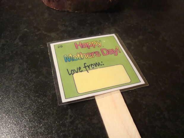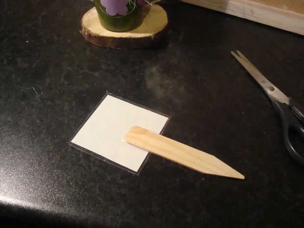 Utiliza microsoft para crear mi banner como yo no soy tan creativo como algunos de ustedes, haría un picec de tarjeta diciendo algo similar, pegado a un palo de maceta de planta a la espalda con cinta y fijo en el bote en un ángulo para crear un efecto agradable y profundidad
