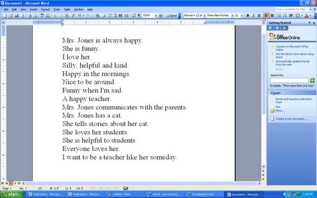 Lo que hicimos fue iniciar una hoja de papel para cada profesor y miembro del personal en nuestra escuela. Si estaban haciendo en casa, se haría cada maestro en su familia. Pasamos alrededor de las hojas de papel, y cada persona anota el pocas palabras (Niza) primera que vienen a la mente. No importa si es una oración completa o solamente un puñado de adjetivos. Lo dejamos descansar por unos días o así, luego pasar los papeles alrededor otra vez. Invitamos a otros a escribir palabras así. Si escuchar alguien diciendo cosas bonitas sobre los profesores, les escribimos.