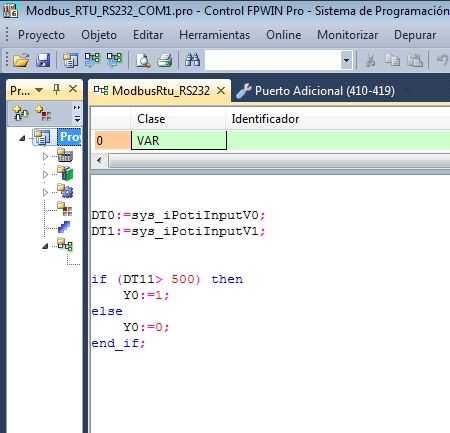 Este PLC posee Modbus RTU protocolo como maestro y esclavo para configurar un profesor debe crear una estrategia, si como esclavo no requiere código plc por defecto es un esclavo y registros se envían automáticamente.