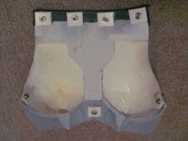 Las placas costilla delantera son fusionaron WF a WF antes de la pintura y la porción de loop de algunos Velcro fue pegada en asimiento en lugar más adelante.