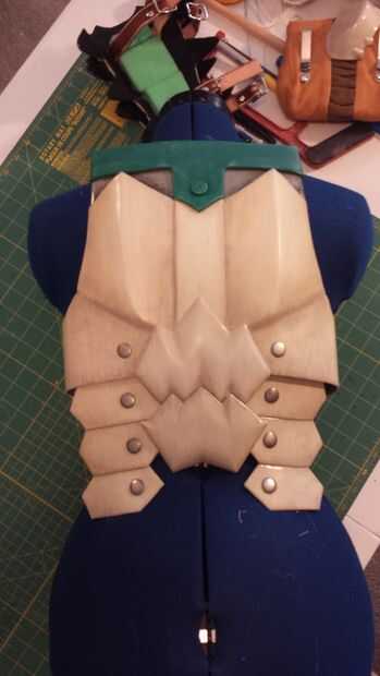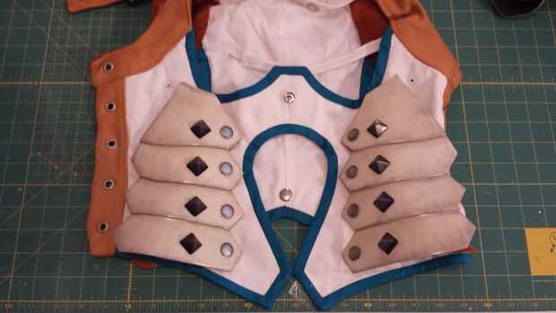 - Asegurado a la placa de underbust (armadura más gruesa) en la parte inferior del busto