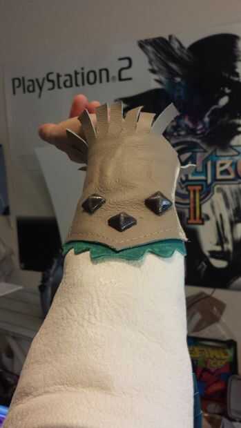 Los Guardabrazos y brazales de cuero se une a la debajo de la placa del brazo codo con cemento de la barcaza. (fotos 4,5)