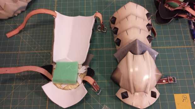 Las rodillas fueron respaldadas con espuma y montadas junto con las lames muslo antes de pintar.