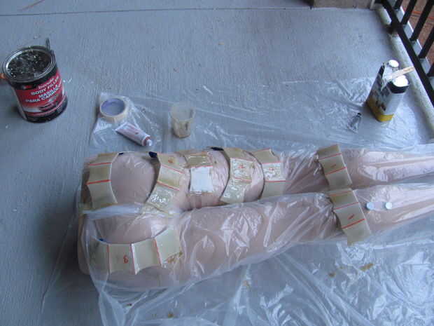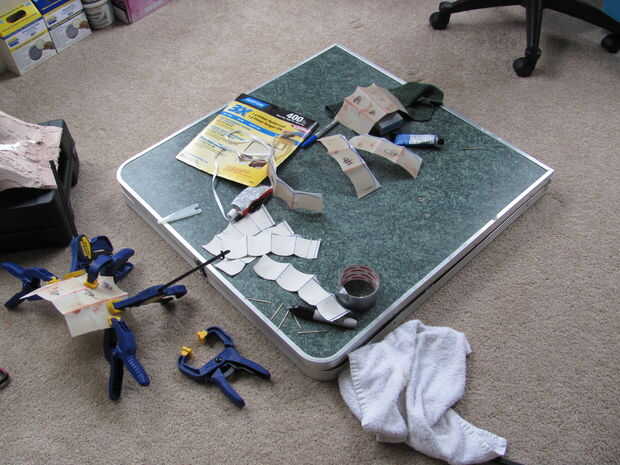 Sólo tengo fotos de estos muslo lames reemplacé después (Foto 8) para mostrar el proceso de recubrimiento de resina pero es bastante sencillo. Poner en tu equipo, se mezclan, cepille en con un cepillo de chip. Espere que se seque. Hacerlo hasta que es tan grueso como quieras. Otra vez, 3-5 capas parecían hacerme bien. Aviso que me olvide de dejar el área superpuesto sin cubrir, por lo que la profundidad lanzó mis proporciones y cosas no encajarán bien. (NO HACERLO) Tuve que recortar la resina apagado una porción pequeña de estas placas por lo que he podido conseguir todo para caber mejor volver juntos. (fotos 9,10)