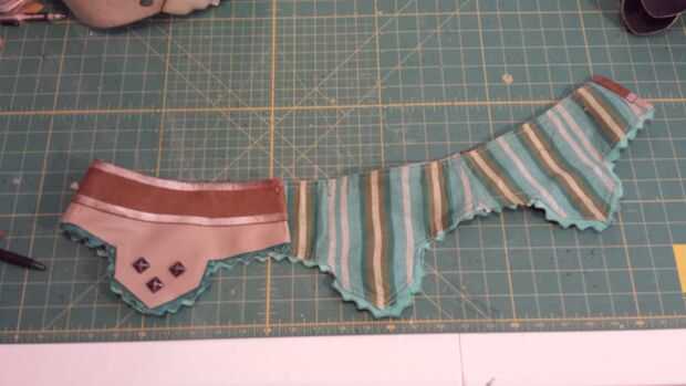 Hay una pequeña línea de teal-ish de detalle entre el gris y el blanco que es especie de una sirena volantes imitación cosas así que hizo una plantilla como (Foto 3) y cortar tiras de piel de cordero de teal como eso.