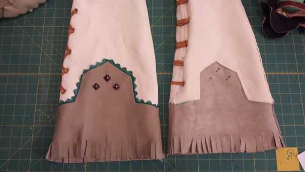 El cuero brazales (Fig 5) bajo los brazales blindados fueron construidas en la exacta misma manera que los calentadores de la pierna, excepto como un cilindro afilado que mi codo de brazo a muñeca.