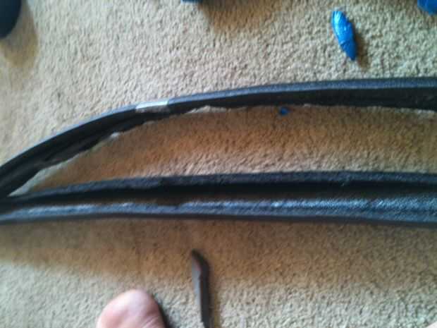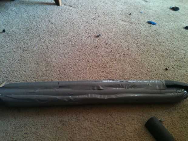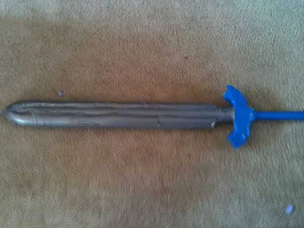 a lo largo. Es importante, ya que evita comprimir la espuma. Asegúrese de que tener extra, por lo que se puede envolver alrededor de la punta para hacer una punta punzante. Poco puede ver lo que quiero decir por las imágenes. Entonces cubra la cuchilla todo en gris, con franjas longitudinales.