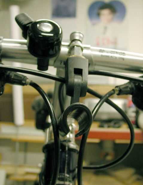 Los controles de la abrazadera al manillar. Un poco de previsión y cables complicado con mi antigua rapidfire shifters ponen los interruptores en un buen lugar ergonómico. De hecho me di cuenta de un apretón de kung-fu que me permite cambio, freno y ciegos esos mapaches simultáneamente.