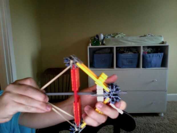 este Mini arco utiliza solamente 19 piezas y fuegos entre 35-45 pies, como siempre, dependiendo de los elasticos utilice.Es el arco más pequeño de KVG en este sitio, y he visto el 99% de KVG armas por lo que me debe de derecho.Este es mi primer instr