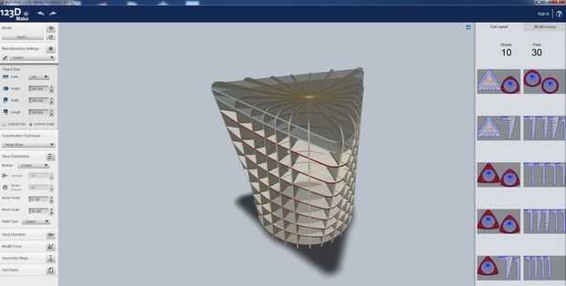 Software: diseño 123D > 123D Make > Illustrator (para corte láser)
