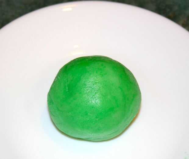 Cuando está bien mezclado, tendrás una bola verde de color uniforme.
