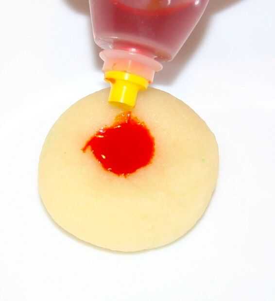 Tomar una bolita de mazapán y la mezcla de colorante alimentario amarillo.