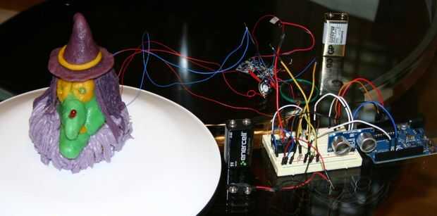 peligro es mi segundo nombre y quería hacer algo fresco y tecnología y para el concurso de Halloween-somos ingenieros en ciernes, así que pensamos que deberíamos ser capaces de armar algo.Lo salió fue esto: una araña con ocho ojos de LED que parpadea