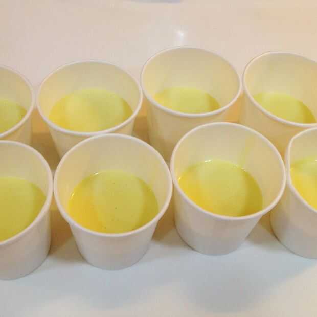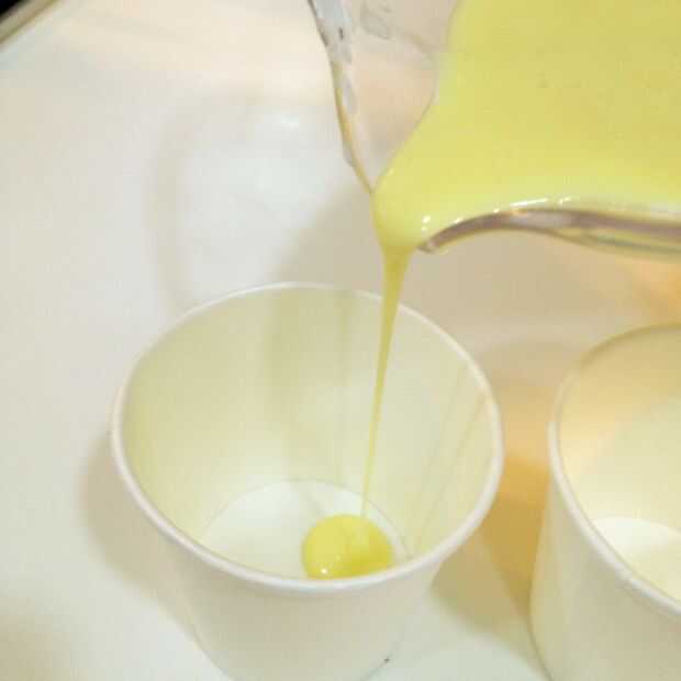 4. Vierta la mezcla en la taza de papel "Media" una taza o menos.
