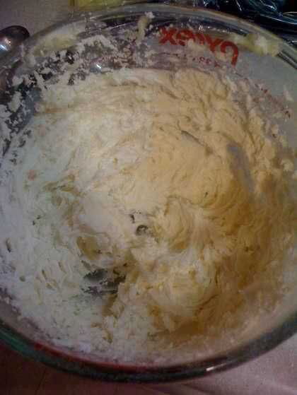 Empezar por mezclar los ingredientes de la masa en orden de arriba a abajo. La mezcla será de espesor debido a la mantequilla tratando de solidificar como se refresca.