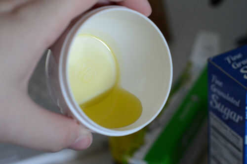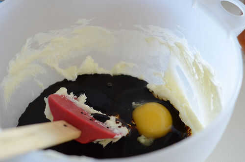 3. Agregue la melaza un huevo a la mezcla húmeda.