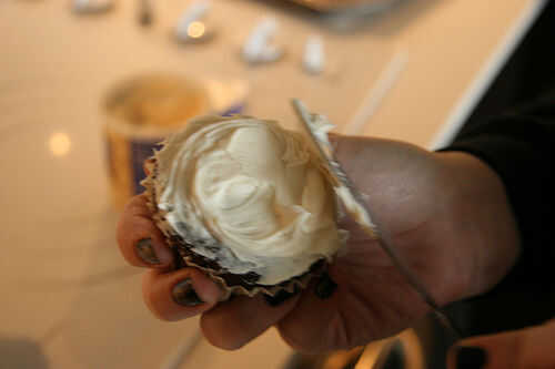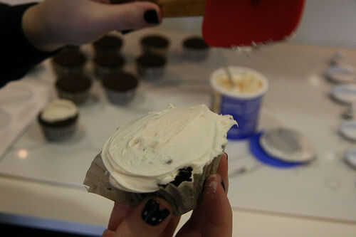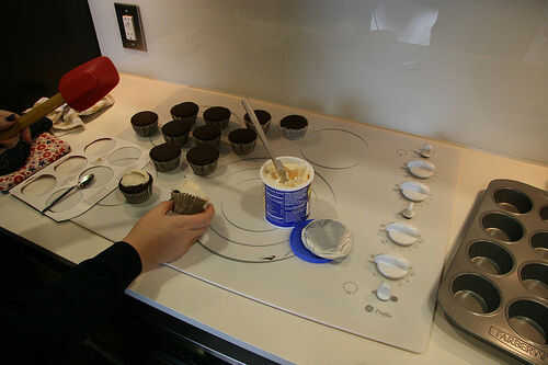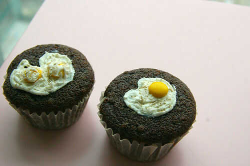 Si eres experto en tuberías, corte una pequeña ranura en una ziplock, añadir su "huevo" y usted puede fácilmente hacer mini huevos encima de tus cupcakes como estos lado asoleado para arriba y cupcakes revueltos.