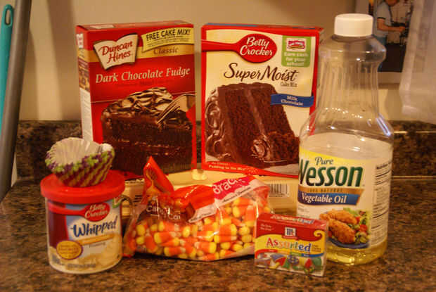 • Mezclas de pastel (yo usé dos tipos porque mi amigo quería hacer alguno por su trabajo tan bien)
