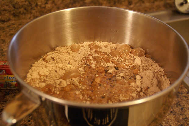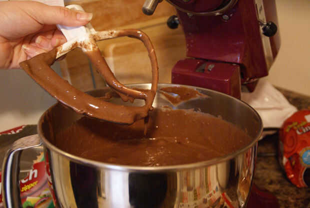 1/2 taza holandés-proceso de cacao en polvo1/2 taza de agua caliente2 tazas de harina para todo uso3/4 de cucharadita de bicarbonato de sodio3/4 de cucharadita de polvo de hornear3/4 de cucharadita de sal gruesa16 cucharadas de mantequilla sin sal, 2