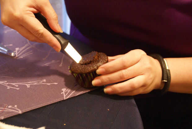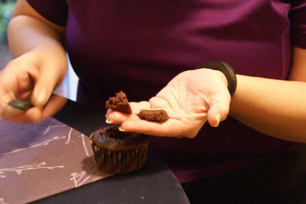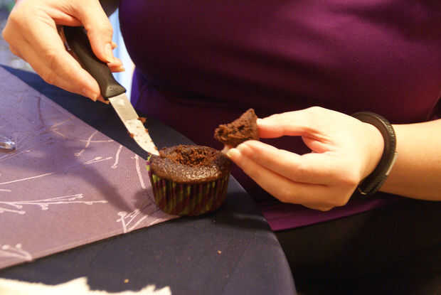 • Corte sus magdalenas toman un cuchillo y en un ángulo reducido alrededor en un círculo