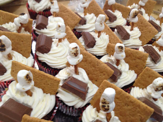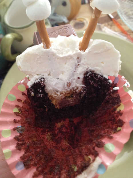 Decorar cupcake con galletas graham/galletas y barras de chocolate