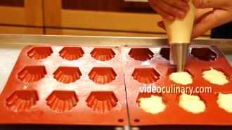 Llenar una manga pastelera con la masa y la tubería en un recipiente ligeramente engrasado madeleine, llenando el molde completo de ¾.