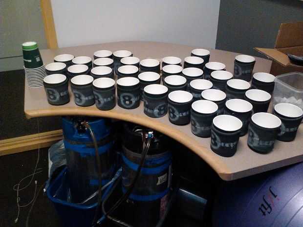 para mi 8 º aniversario en el trabajo, que quería hacer magia 8 bolas como mueren, que flotaría en la cerveza. El problema es que el dado no son baratos y necesitaba 50 + de ellos. Pasé por varias ideas. El plan entregado era simplemente un trozo de papel con el patrón en él. Paliza el papel, cortar el dado y sellado.