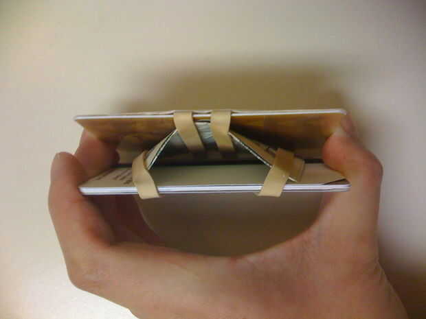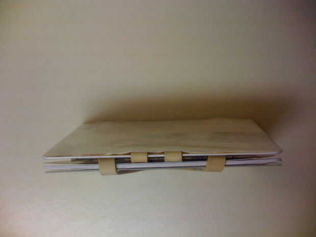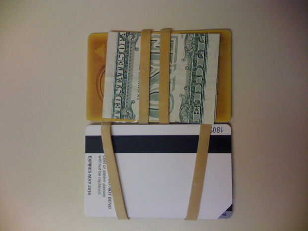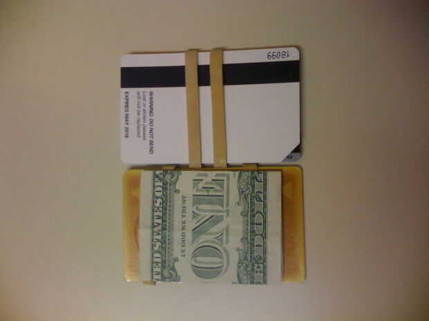 he sido fan de carteras minimalistas delgados de clip del dinero a las bandas de goma. Recientemente, mi novia Cindy creó una cartera minimalista de tamaños diferentes Liga específicamente para mis necesidades. Lamentablemente el proceso de creación