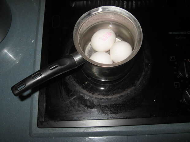 2. Vierta agua en la olla (nivel de agua debe ser aproximadamente 1,5 pulgadas por encima de los huevos)
