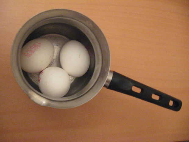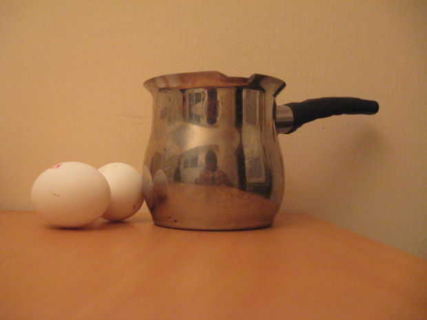 1. Coloque los huevos dentro de la olla de café pequeña de metal.