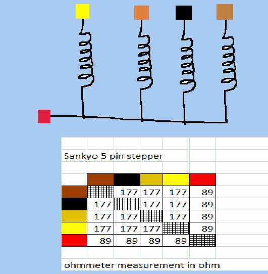 a continuación se muestra la matriz de medición de la resistencia junto con mi interpretación de cómo se arreglan las bobinas dentro.