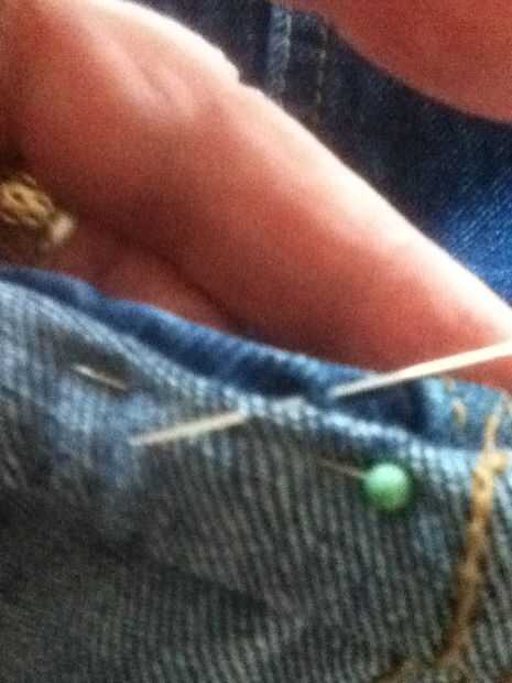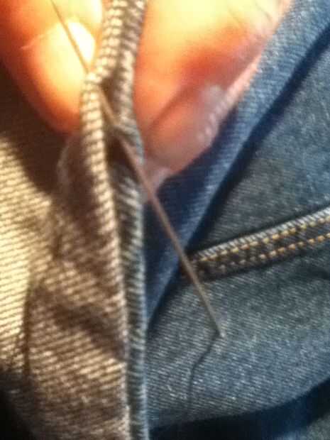 aun no puedo empezar a decirte cuántas agujas me he roto al intentar dobladillo de los pantalones vaqueros. En un momento iba a don gafas de seguridad para proteger mis ojos de agujas del vuelo! Pero no más! Pensé que tiene que haber una mejor manera