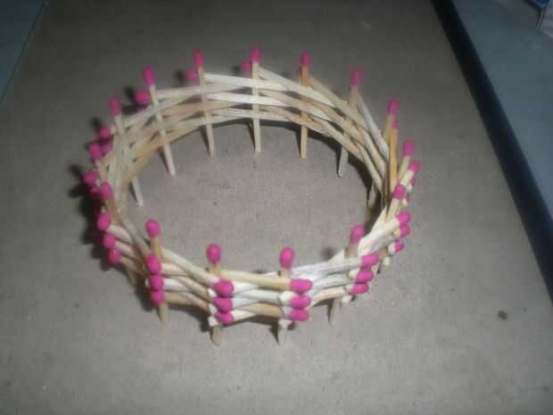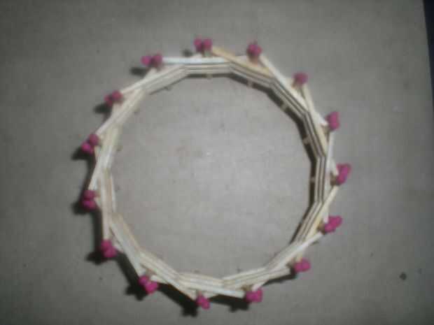 Un proyecto muy fácil y rápido hacer cuando aburrido! No muchos objetos inusuales y divertido hacerlo! Espero que lo disfruten :)Se necesita (para 1 cohete):8 partidos / cabezas del fósforoPincho sobre el mismo diámetro que las cabezas de partidoPape
