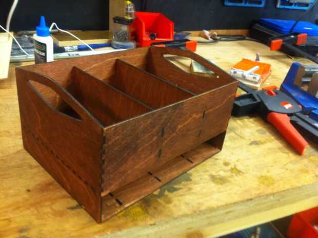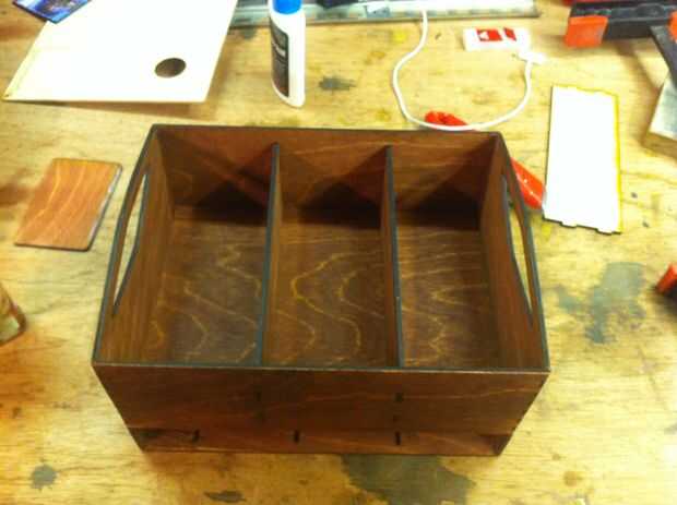 Después de un poco de medir utilicé http://www.makercase.com/ para crear los planes para una caja de corte por láser que las dimensiones de mi pecho. Luego edité el vector resultante en Inkscape para agregar los controladores, crear los divisores, retire la tapa y añadir la pieza media.
