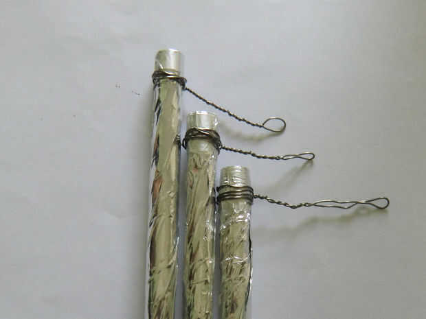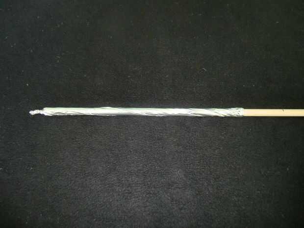 Ahora toma el papel de aluminio y cortar a la longitud correcta y un adicional 2 cm. de rollo de aluminio de la hoja en el palo de madera y apriete el extremo de torcer, como se muestra en la segunda foto.