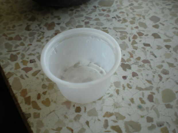 Perfore un pequeño agujero en el fondo de la taza de wasabi.